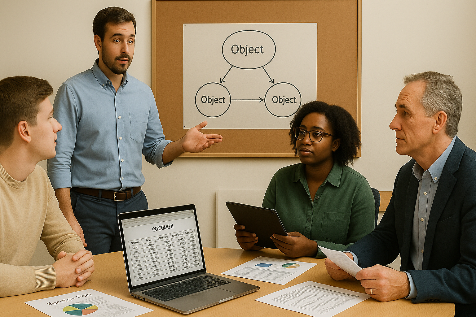 Information Management course equips master’s students with a systems-thinking toolkit for leading software-intensive projects from concept to procurement. Across four online teaching blocks the course introduces Object-Process Methodology (OPM) for modelling structure, behaviour and cost; industry sizing techniques such as COCOMO II and Function Points; and the governance roles of the project manager, consultant and CIO. Each student develops an individual project: an OPM model of a real information system, its animated simulation, calibrated cost sheet and a draft Request-for-Proposal suitable for vendor selection.